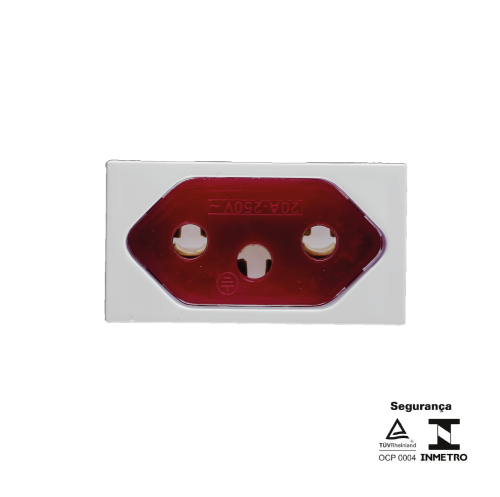 1 Tomada 20A 250V – Horizontal – c/ Tampa Vermelha