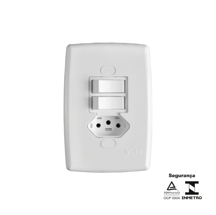 Placa 4×4 para Tomada Fixa de Embutir + Interruptor 1 Tecla