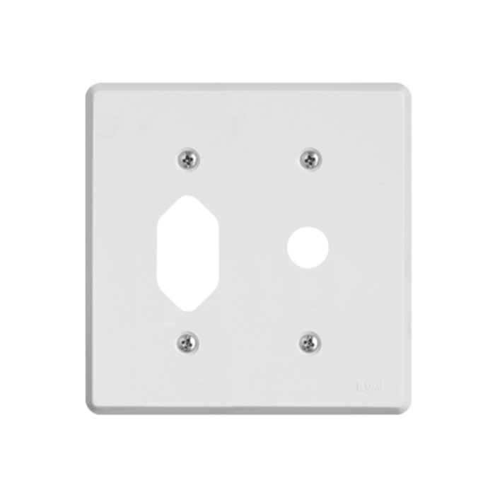 Placa 4×4 Tomada Fixa de embutir + Saída de Fio