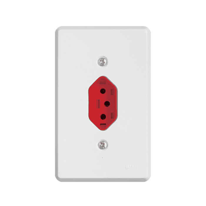 19142 - Tomada Fixa de Embutir Vermelha 2P + T 10A 250V